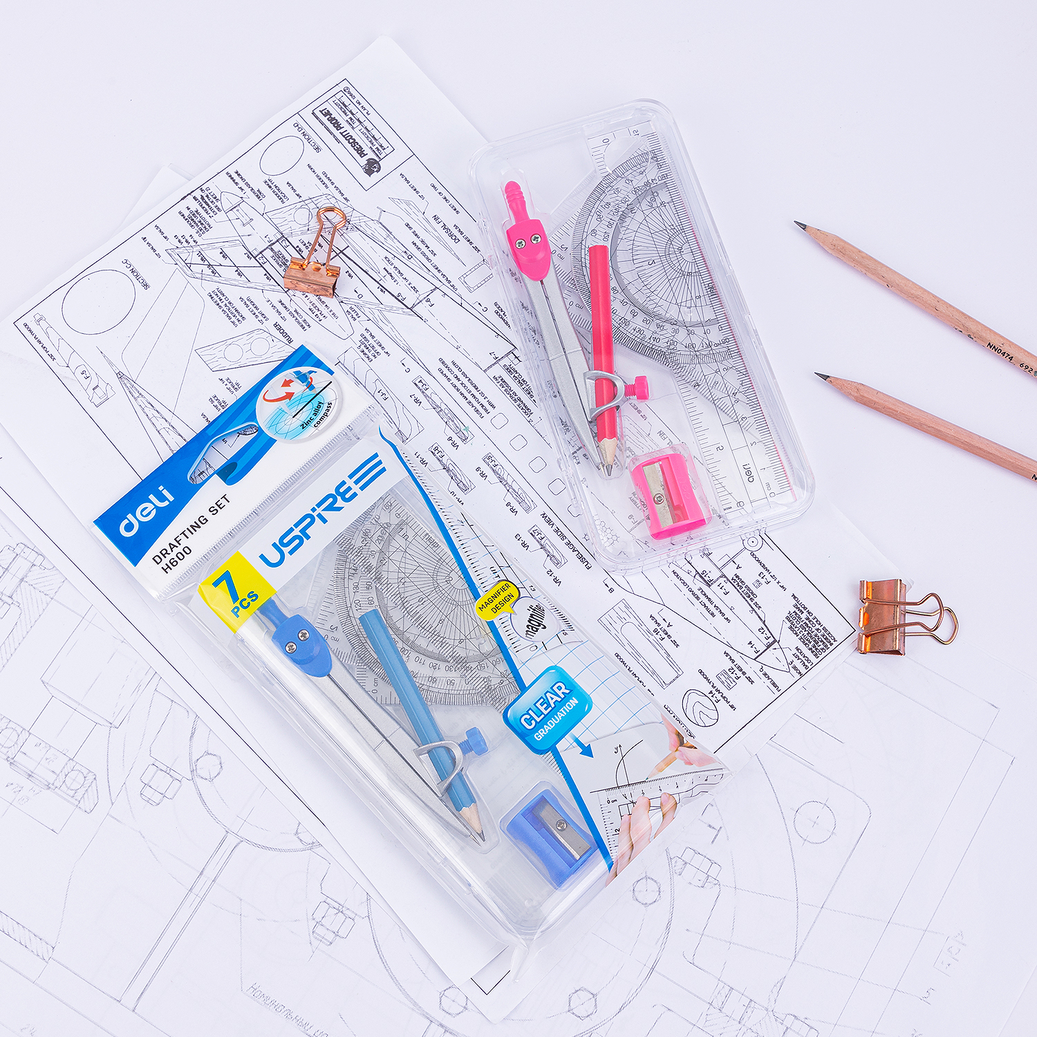- Nhỏ gọn: Kích thước các thước được thiết kế vừa vặn để bỏ chung vào túi zip đi kèm hoặc hộp bút, tránh thất lạc.