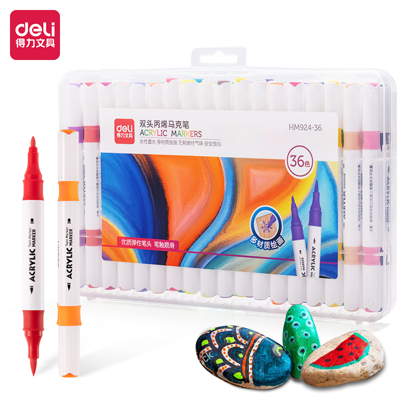 Bút Acrylic Marker 2 đầu Deli HM924 là phiên bản nâng cấp hoàn hảo, mang đến sự linh hoạt tối đa cho người yêu vẽ. Nếu như các loại bút thông thường chỉ có một đầu viết, thì HM924 tích hợp “2 trong 1” với hai kích thước ngòi khác nhau trên cùng một thân bút. Sản phẩm giúp bạn thỏa sức sáng tạo trên mọi chất liệu, từ đi nét chi tiết đến tô mảng màu lớn mà không cần phải thay đổi nhiều loại bút, cực kỳ tiện lợi và tiết kiệm.