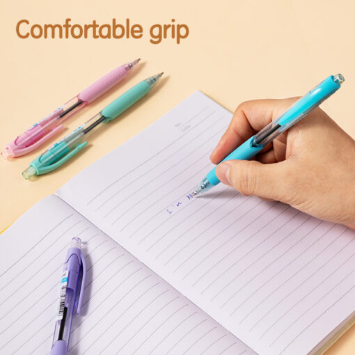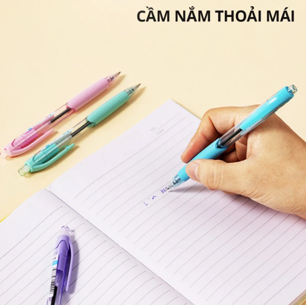 - Cầm nắm chắc chắn: Thân bút được thiết kế vừa vặn, thường có đệm cao su hoặc vân chống trượt ở phần tay cầm, giúp bạn viết lâu mà không bị mỏi hay trơn trượt do mồ hôi.