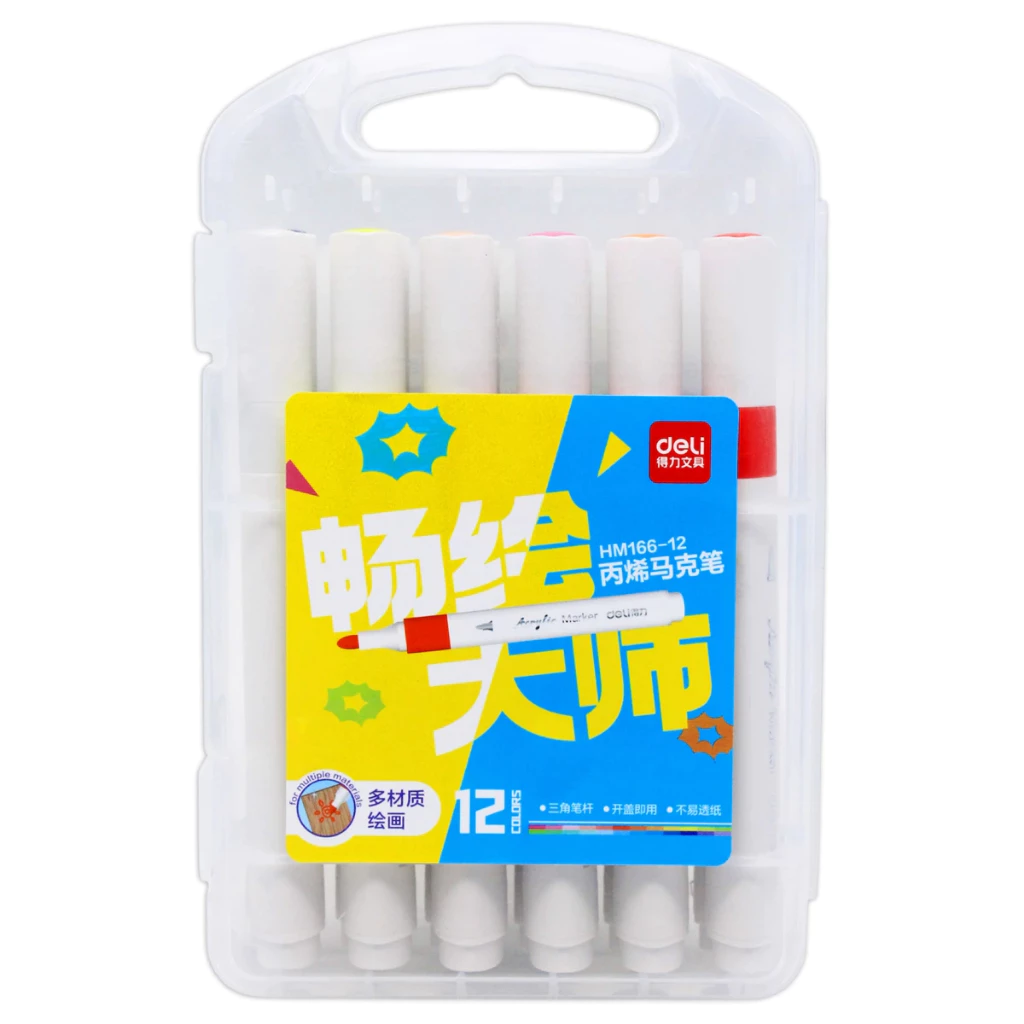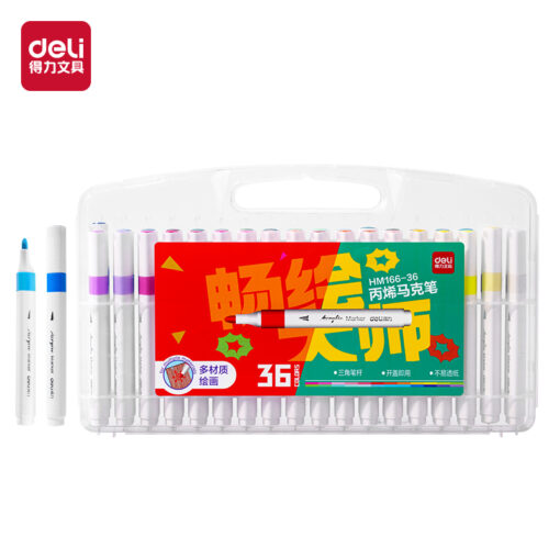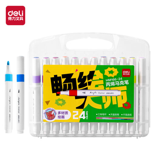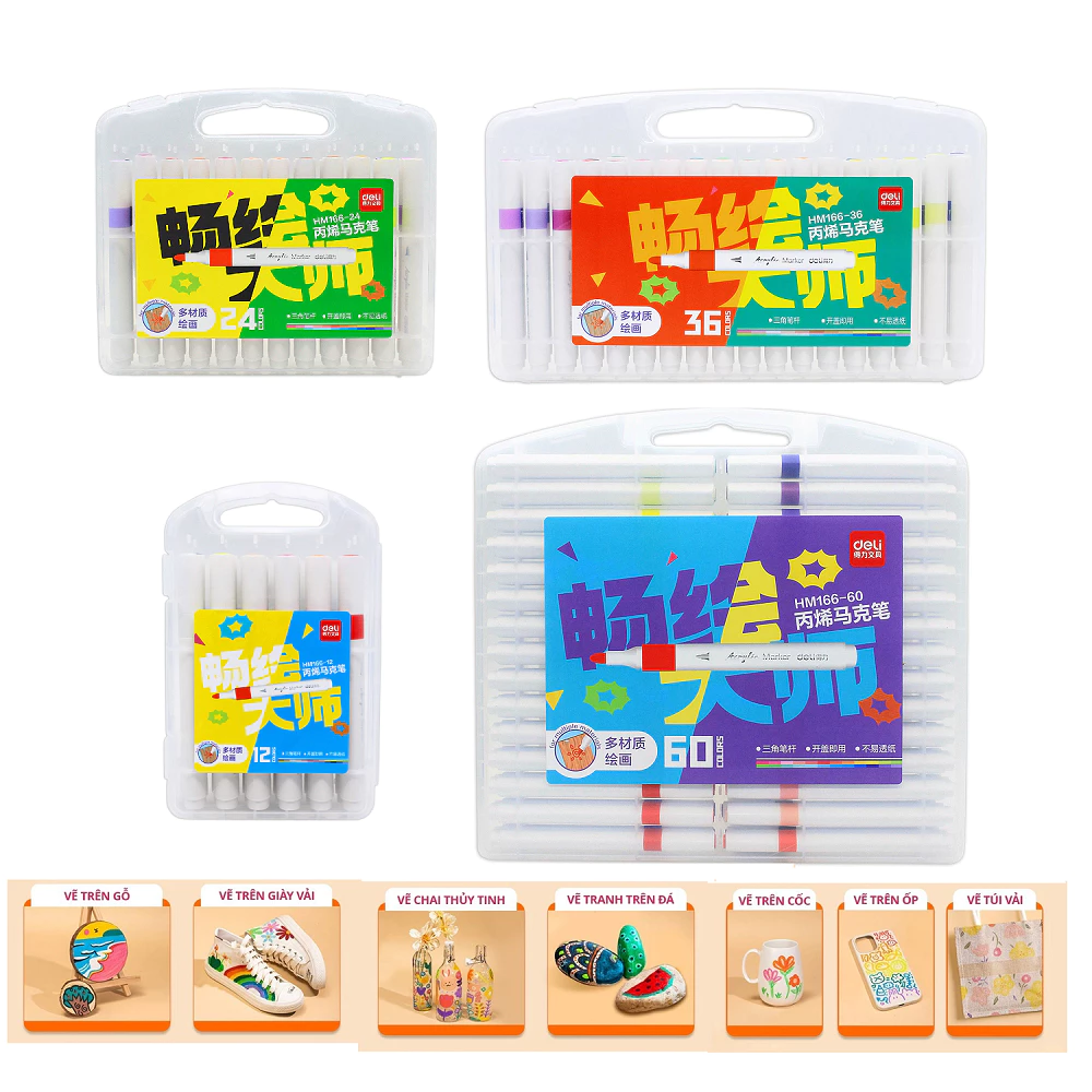 Bộ bút màu Acrylic Marker Deli HM166 là “chìa khóa” mở ra cánh cửa sáng tạo không giới hạn cho bất kỳ ai yêu thích hội họa và đồ thủ công (DIY). Không chỉ đơn thuần là vẽ trên giấy, với bộ bút này, bạn có thể tự tay “trang điểm” cho đôi giày cũ, chiếc ốp lưng điện thoại nhàm chán hay những viên sỏi vô tri trở nên rực rỡ sắc màu. Với bảng màu “khủng” lên đến 60 màu, sản phẩm đáp ứng từ nhu cầu tập vẽ cơ bản đến các tác phẩm nghệ thuật chuyên nghiệp.
