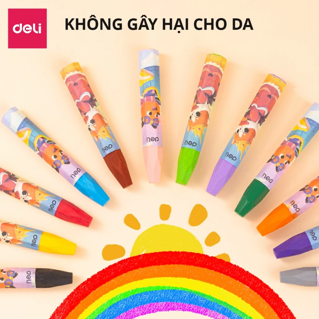 Sạch sẽ và An toàn: Mỗi cây bút đều được bọc tem giấy giúp tay bé không tiếp xúc trực tiếp với sáp, giữ vệ sinh sạch sẽ. Sản phẩm sử dụng nguyên liệu an toàn, không độc hại, thân thiện với sức khỏe trẻ em.