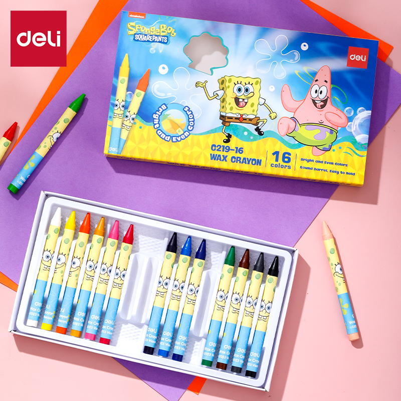 Bộ bút sáp màu Deli EC219 mang cả đại dương vui nhộn đến bàn học của bé với hình ảnh chú Bọt Biển Bob (SpongeBob) tinh nghịch. Không chỉ thu hút các bạn nhỏ bởi giao diện hoạt hình đáng yêu, sản phẩm còn ghi điểm nhờ chất lượng sáp màu mềm mịn, tươi sáng. Với các tùy chọn từ 10 đến 24 màu, bé có thể thỏa sức lựa chọn để tô vẽ nên những bức tranh rực rỡ theo trí tưởng tượng của mình.