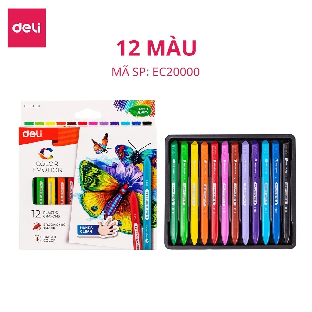 Bút sáp nhựa Deli EC20000 (12 màu) là bước tiến mới trong thế giới dụng cụ mỹ thuật cho bé. Khác với sáp màu truyền thống, dòng “Sáp nhựa” mang đến trải nghiệm vẽ tranh hoàn toàn mới: Sạch sẽ hơn, bền bỉ hơn và sắc nét hơn. Với 12 tông màu cơ bản rực rỡ, sản phẩm giúp bé thỏa sức sáng tạo mà không lo lấm lem tay chân, là lựa chọn điểm 10 cho các bậc phụ huynh kỹ tính.