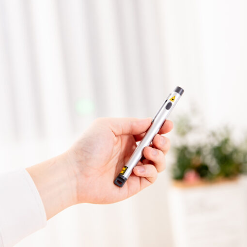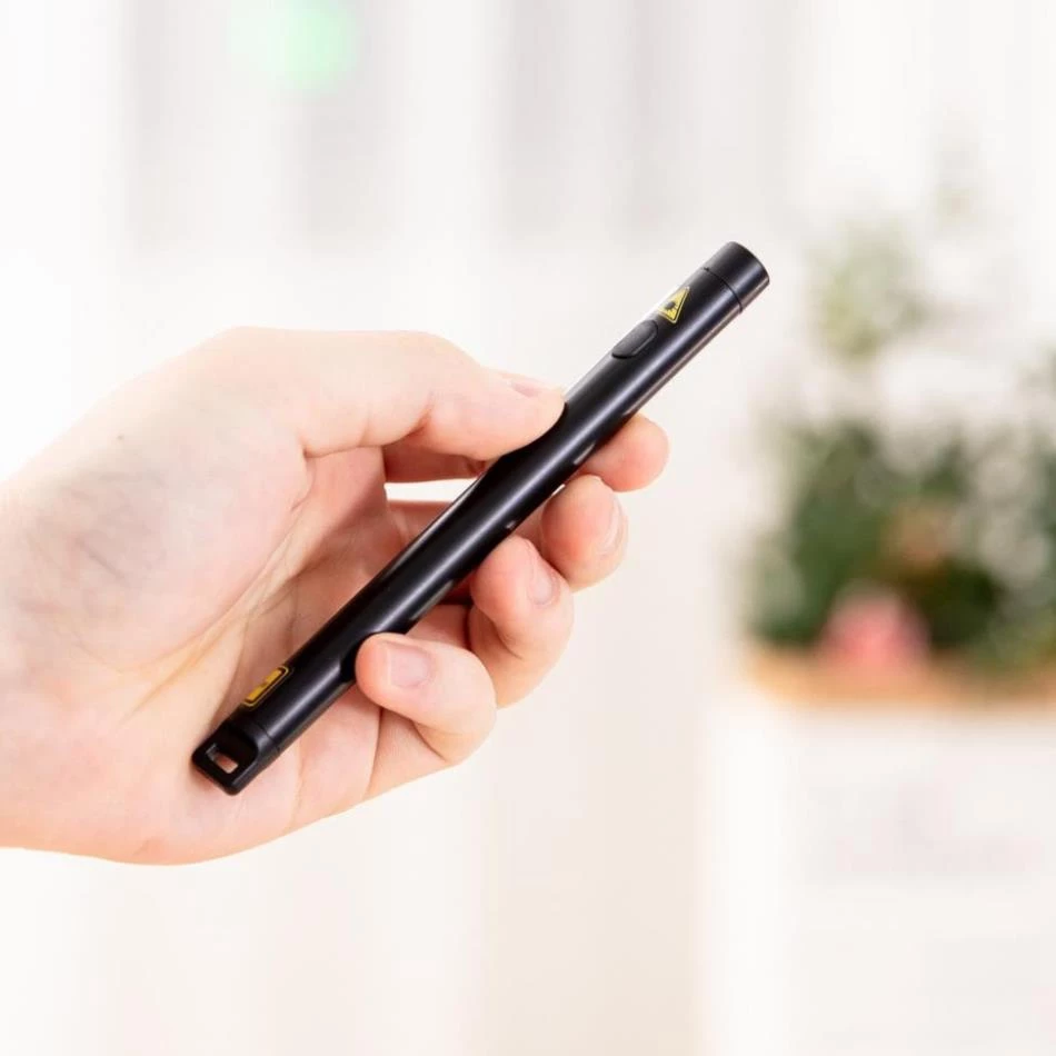 - Tia laser đỏ nổi bật: Được trang bị đèn laser màu đỏ sắc nét, giúp bạn dễ dàng chỉ dẫn, nhấn mạnh vào các nội dung quan trọng trên màn hình chiếu, thu hút sự tập trung của người xem.