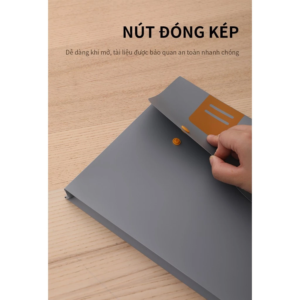 Chất liệu nhựa bền bỉ: Được làm từ nhựa PP chất lượng cao, cặp có khả năng chịu va đập tốt, chống thấm nước hiệu quả. Bạn có thể yên tâm mang theo tài liệu dưới trời mưa nhẹ mà không lo giấy tờ bên trong bị ướt.