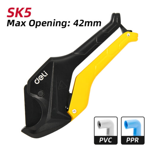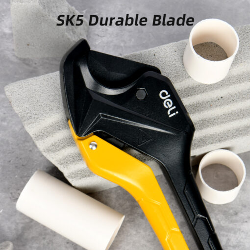 Dao cắt ống nhựa Deli EDL2502 là trợ thủ đắc lực không thể thiếu của người thợ điện nước chuyên nghiệp. Với thiết kế vỏ nhôm đúc nguyên khối bền nhẹ cùng cơ chế nấc trợ lực thông minh, sản phẩm giúp việc cắt các loại ống nhựa cứng như PVC, PPR trở nên nhẹ nhàng, không tốn sức. Lưỡi dao sắc bén mang lại đường cắt phẳng mịn, vuông góc, đảm bảo mối nối ống luôn khít và thẩm mỹ mà không cần mài dũa lại.