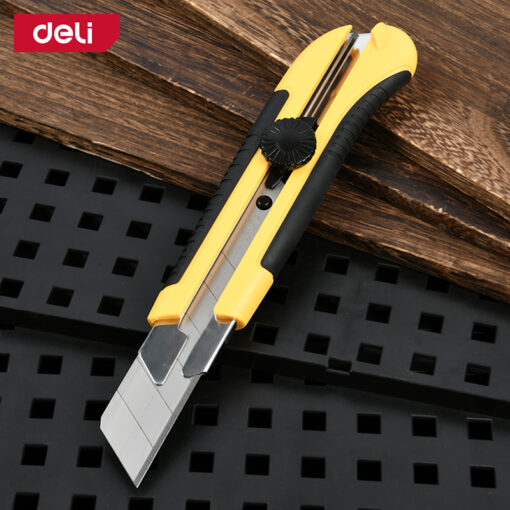 Dao rọc giấy hạng nặng Deli EDL0035 là “gã khổng lồ” trong thế giới dụng cụ cắt gọt cầm tay, được thiết kế chuyên biệt cho những công việc đòi hỏi sức mạnh và độ ổn định cao. Sở hữu lưỡi dao bản lớn 25mm (lớn hơn nhiều so với chuẩn 18mm thông thường) cùng cơ chế khóa vặn núm xoay chắc chắn, sản phẩm giúp bạn cắt xẻ các vật liệu dày, cứng như tấm thạch cao, ván gỗ ép, tấm nhựa hay thảm dày một cách dứt khoát, không hề có hiện tượng rung lắc hay cong lưỡi.