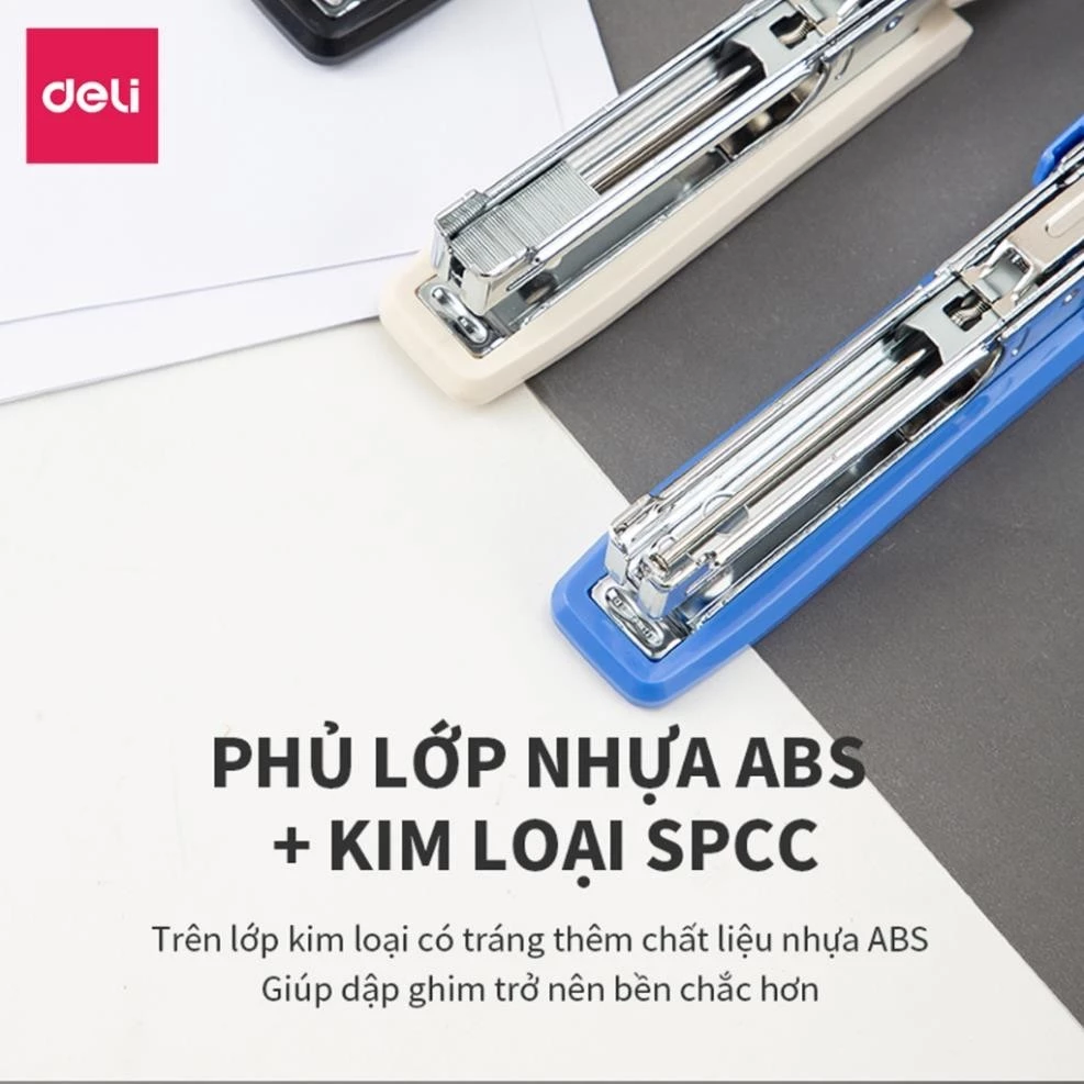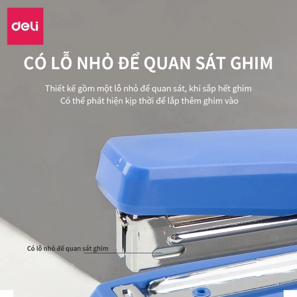 Bấm nhẹ, dứt khoát: Cơ chế lò xo đàn hồi tốt kết hợp với thiết kế trợ lực giúp thao tác bấm trở nên nhẹ nhàng. Bạn không cần dùng quá nhiều sức mà ghim vẫn xuyên qua giấy ngọt lịm, giữ giấy chắc chắn.
