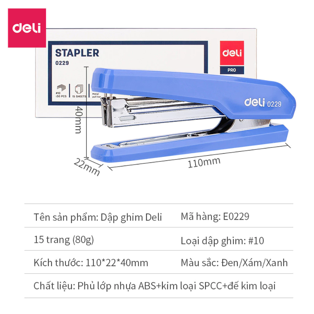 Dập ghim (bấm kim) Deli E0229 là “trợ thủ” nhỏ nhắn nhưng không thể thiếu trên mọi bàn làm việc và trong hộp bút của các bạn học sinh. Với thiết kế nhỏ gọn, màu sắc tươi tắn cùng khả năng vận hành trơn tru, sản phẩm giúp bạn sắp xếp, cố định giấy tờ và tài liệu một cách gọn gàng, nhanh chóng chỉ trong “một nốt nhạc”.