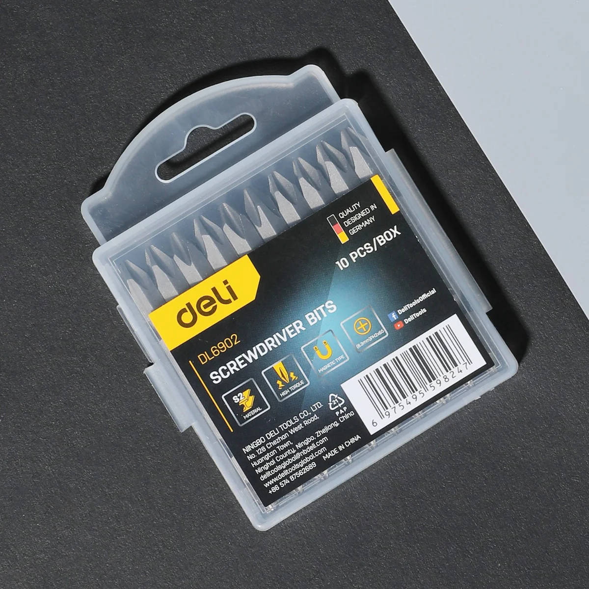 Đầu vít bake Deli EDL6902 là phụ kiện tiêu hao chất lượng cao, được thiết kế chuyên dụng cho các loại máy khoan, máy bắt vít cầm tay. Được chế tạo từ thép S2 siêu cứng với thiết kế 2 đầu tiện lợi, sản phẩm giải quyết triệt để nỗi lo bị toét đầu ốc hay trượt vít khi thi công. Đây là giải pháp tiết kiệm và hiệu quả, giúp công việc lắp ráp, sửa chữa trở nên nhanh chóng và chuyên nghiệp hơn.