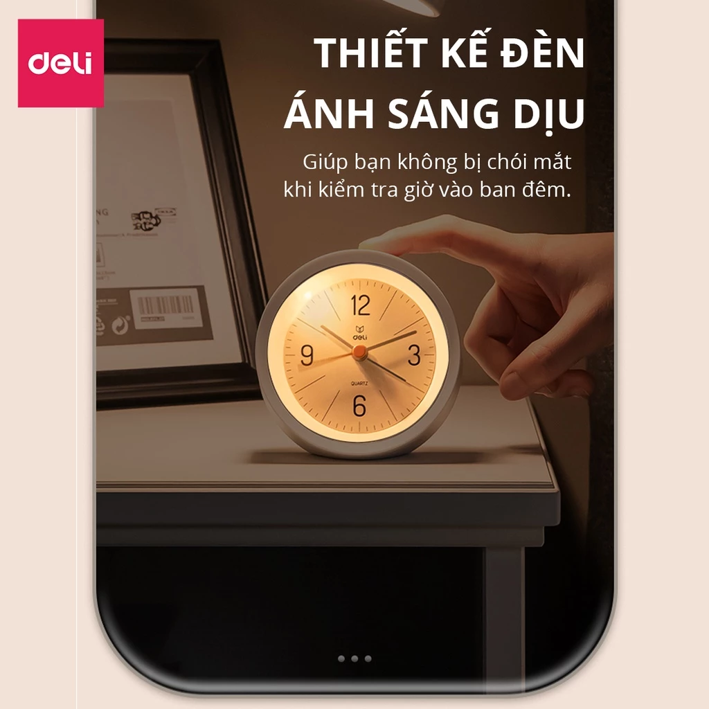 Đồng hồ báo thức Deli LE300 gây ấn tượng bởi thiết kế bo tròn mềm mại, mang phong cách tối giản nhưng rất hiện đại. Với hai tông màu xanh và trắng trang nhã, chiếc đồng hồ này không chỉ là người bạn đồng hành tin cậy gọi bạn thức dậy mỗi sáng mà còn là món phụ kiện trang trí xinh xắn, giúp góc học tập hay bàn làm việc trở nên sinh động và ngăn nắp hơn.