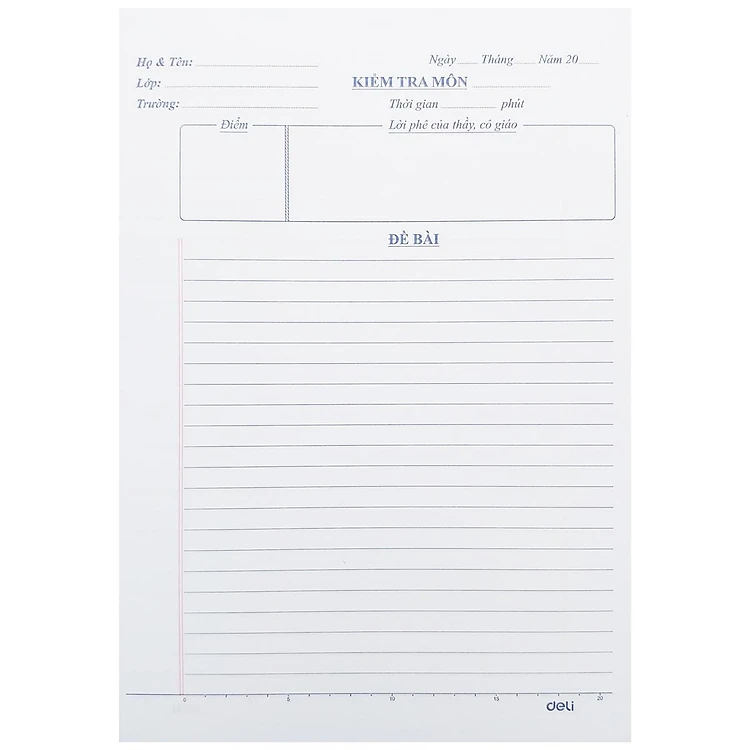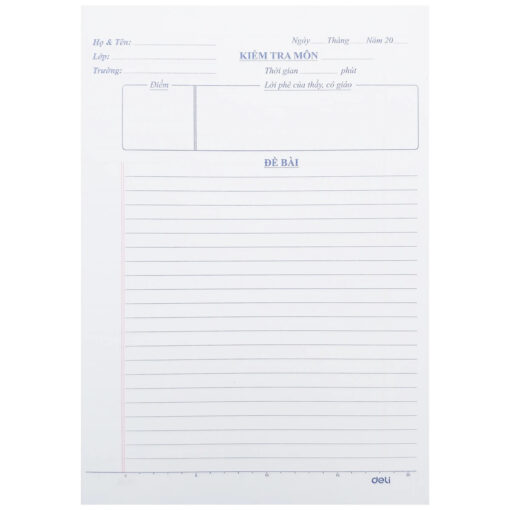 Giấy kiểm tra Deli CN602 là “người bạn đồng hành” quen thuộc giúp các bạn học sinh tiết kiệm thời gian và tự tin hơn trong mỗi giờ kiểm tra. Thay vì phải hì hụi kẻ vẽ khung điểm, lời phê hay điền thông tin thủ công, sản phẩm đã được in sẵn đầy đủ các mục cần thiết với bố cục chuẩn mực. Giấy có độ mịn cao, dòng kẻ rõ nét, giúp bài làm của bạn luôn sạch đẹp và gây thiện cảm với thầy cô.