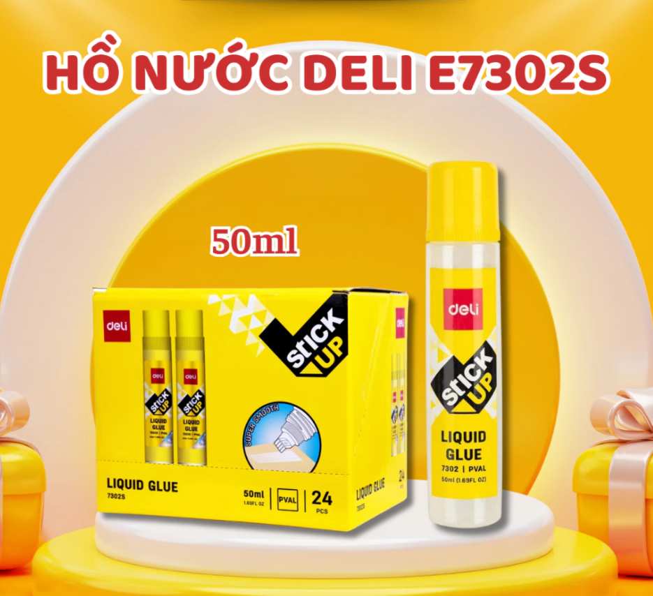 Hồ nước Deli E7302S là “người bạn” quen thuộc trong cặp sách của biết bao thế hệ học sinh. Với chất keo trong suốt và đầu bôi tiện lợi, sản phẩm giúp việc dán giấy thủ công hay niêm phong bao thư trở nên dễ dàng, nhanh chóng. Dung tích 50ml nhỏ gọn, vừa vặn để các bé mang đi học mỗi ngày mà không chiếm diện tích hộp bút.