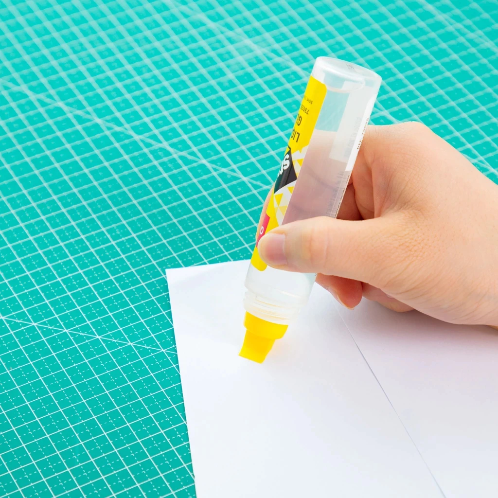 - Bóp nhẹ thân chai và di chuyển đầu silicon để thoa keo lên bề mặt giấy.