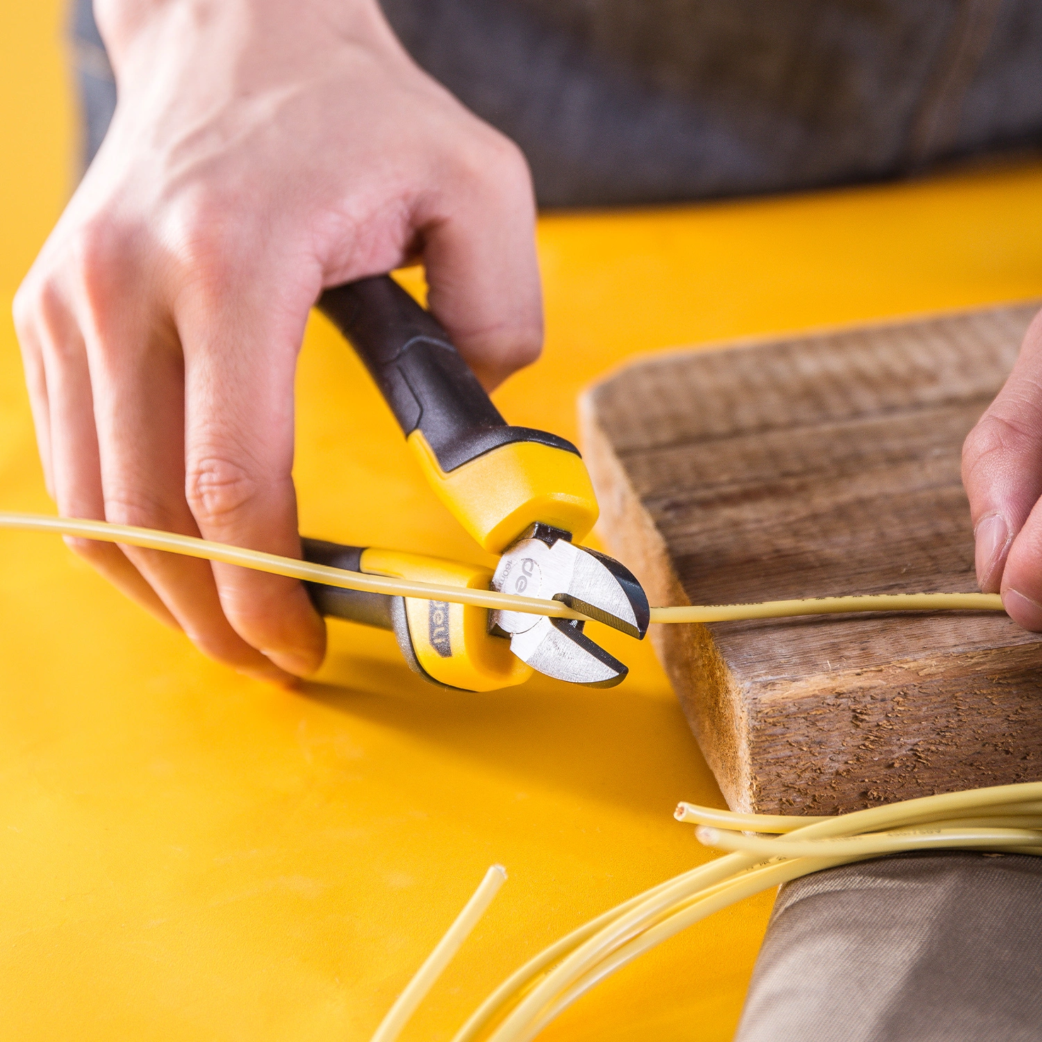 Kìm cắt Deli EDL2206 là công cụ không thể thiếu trong túi đồ nghề của thợ điện cũng như hộp dụng cụ gia đình. Nổi bật với lưỡi cắt được tôi cao tần sắc bén, sản phẩm giúp việc cắt dây điện, dây kẽm hay dây thít nhựa trở nên “ngọt lịm” và nhẹ nhàng. Thiết kế nhỏ gọn 6 inch cùng tay cầm êm ái mang lại cảm giác thoải mái tối đa, giúp bạn thao tác linh hoạt ngay cả trong những không gian hẹp.