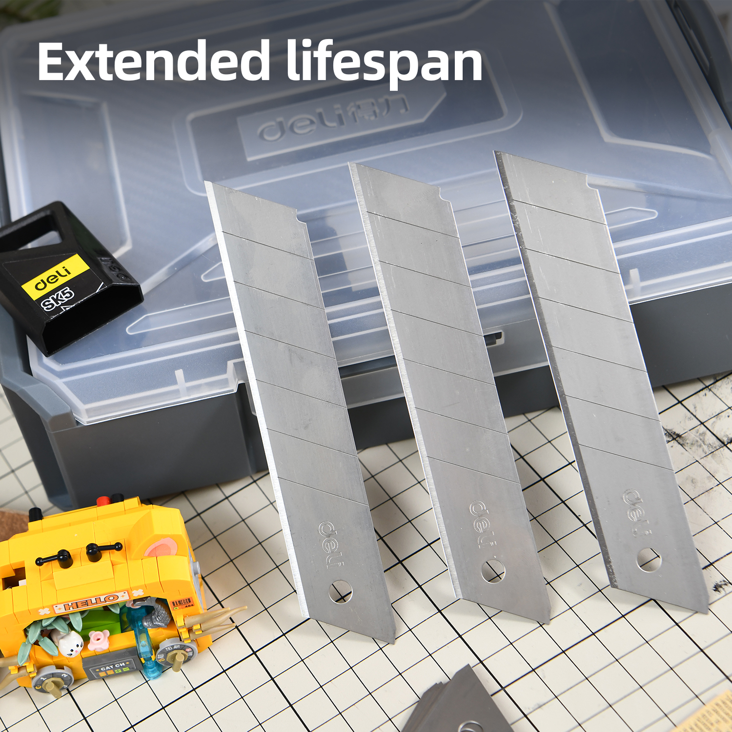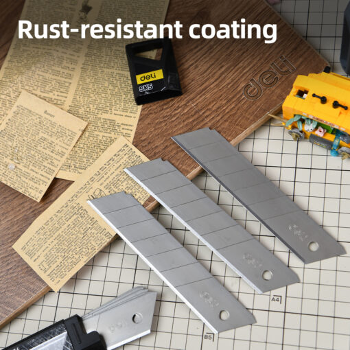 Tương thích: Lắp vừa vặn với hầu hết các loại dao rọc giấy cỡ đại (dao 25mm) của Deli và các thương hiệu khác trên thị trường.