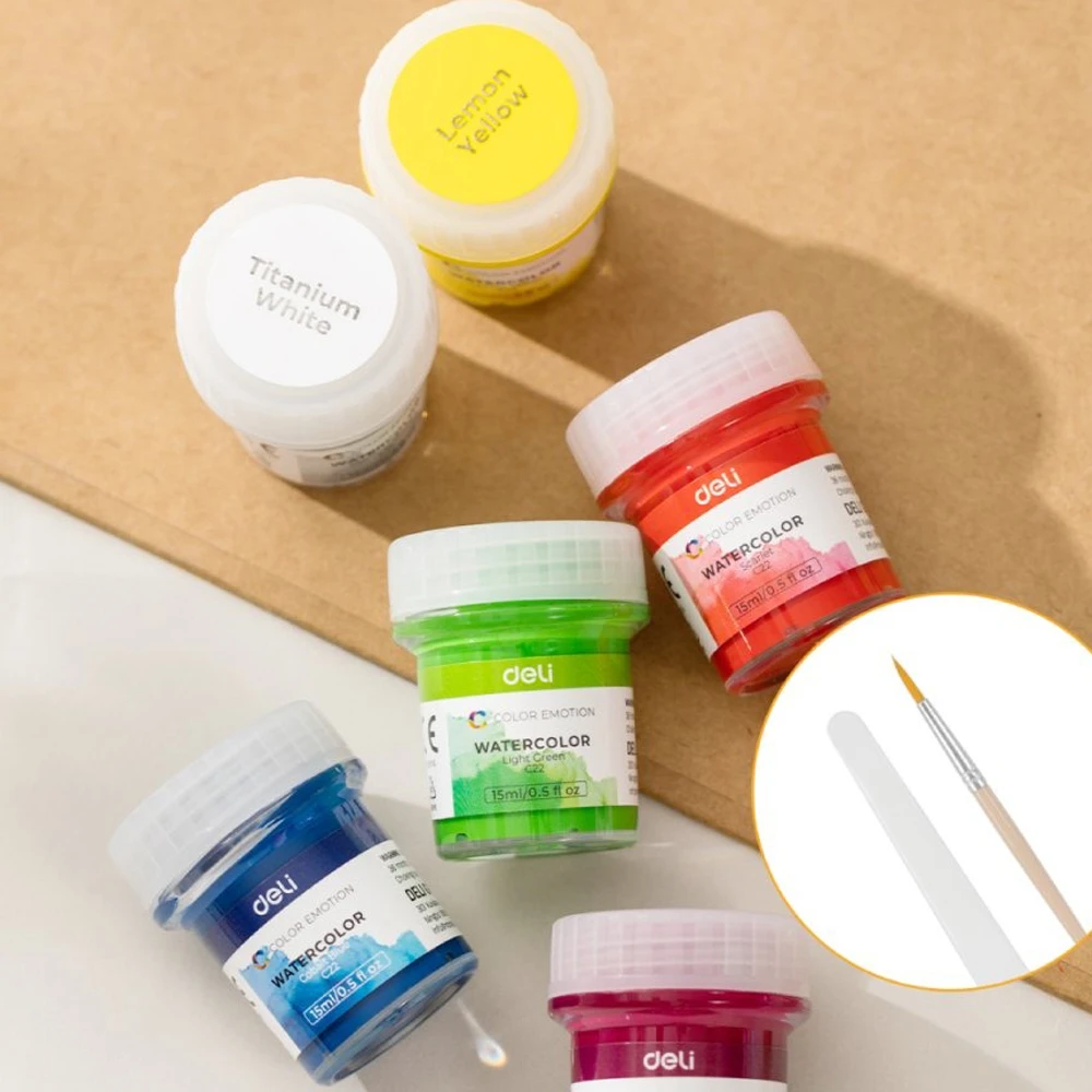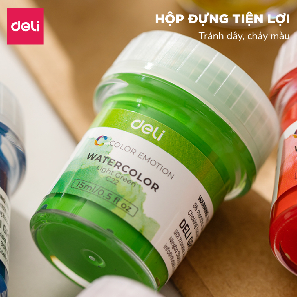 Bộ màu nước Deli Emotion EC22 mang đến thế giới cảm xúc đầy màu sắc cho các tác phẩm hội họa của bạn. Với thiết kế dạng tuýp tiện dụng và dung tích 15ml “hào phóng”, sản phẩm là lựa chọn kinh tế và chất lượng để các bạn học sinh, sinh viên hay những người mới bắt đầu làm quen với nghệ thuật vẽ màu nước thỏa sức sáng tạo nên những bức tranh trong trẻo và bay bổng.