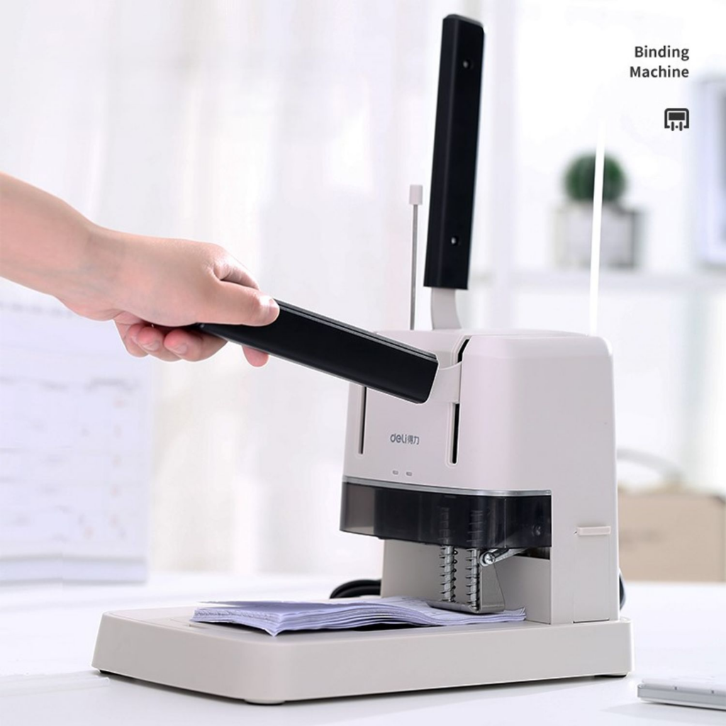 Máy đóng gáy Deli 3876A là giải pháp hoàn hảo để biến những xấp tài liệu rời rạc thành những cuốn sách chuyên nghiệp và chỉn chu. Với tông màu trắng thanh lịch cùng thiết kế hiện đại, sản phẩm không chỉ giúp bạn sắp xếp giấy tờ gọn gàng mà còn là điểm nhấn thẩm mỹ tinh tế cho không gian văn phòng.