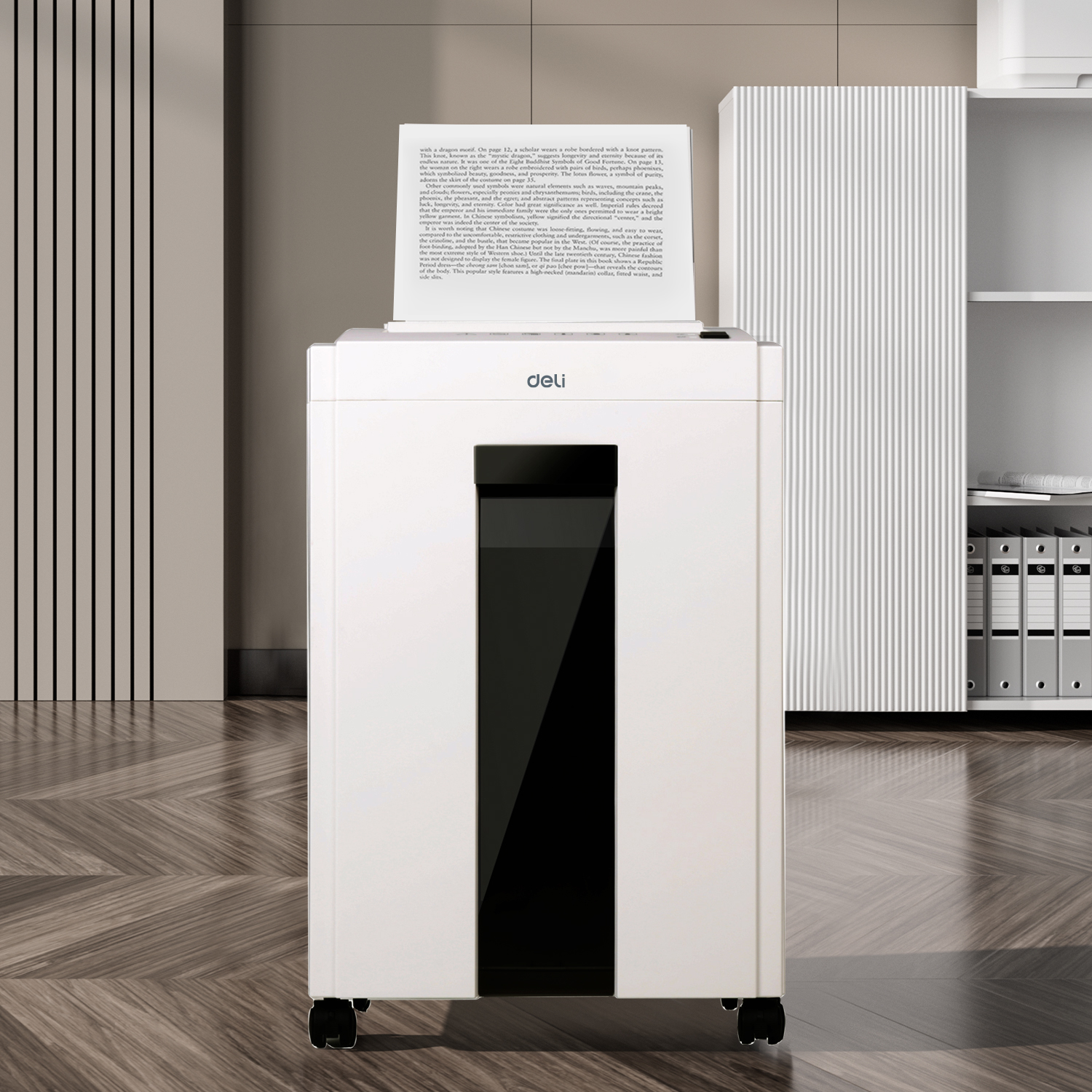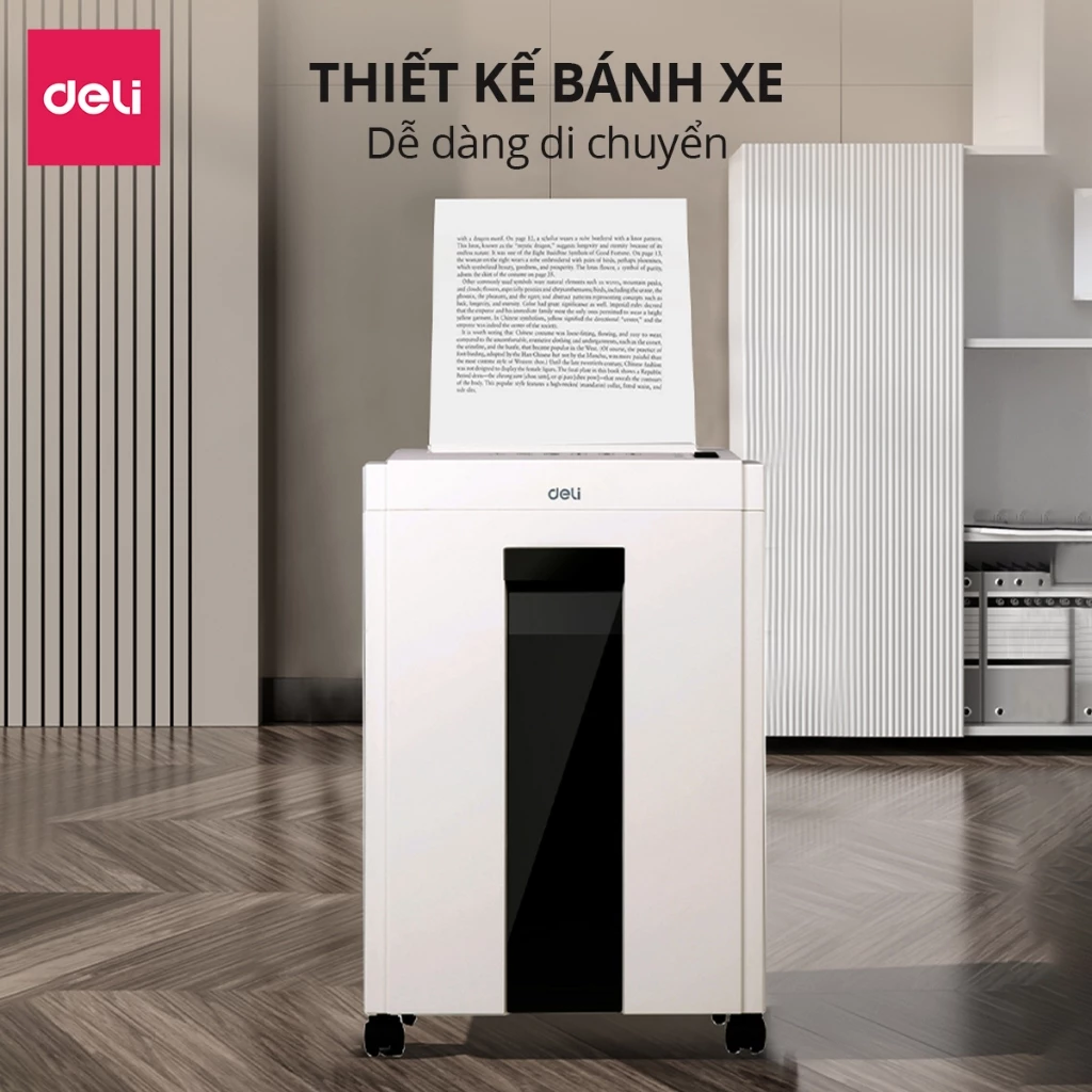 Máy hủy giấy Deli ET053 là giải pháp bảo mật thông tin cá nhân và văn phòng hiệu quả, giúp bạn an tâm tuyệt đối khi xử lý các giấy tờ quan trọng. Với thiết kế màu trắng trang nhã cùng kích thước nhỏ gọn, chiếc máy này không chỉ là một thiết bị văn phòng phẩm mà còn là món đồ nội thất hiện đại, dễ dàng đặt gọn dưới chân bàn làm việc mà không tốn diện tích.