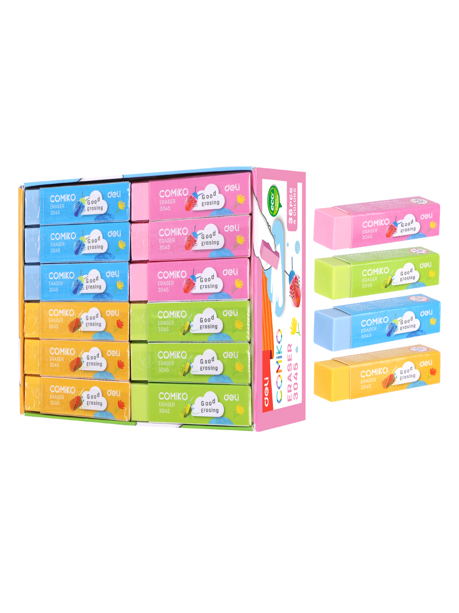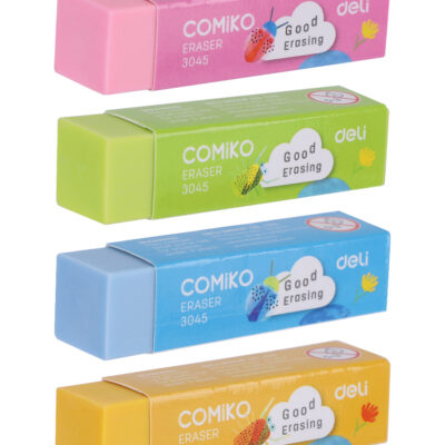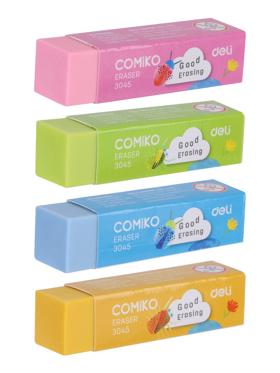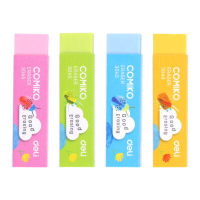 - Màu sắc rực rỡ: Khác với những cục tẩy trắng đơn điệu, E3045 sở hữu bảng màu tươi tắn, năng động. Điều này giúp các bạn học sinh dễ dàng tìm thấy tẩy trong hộp bút và tăng thêm niềm vui khi sử dụng.