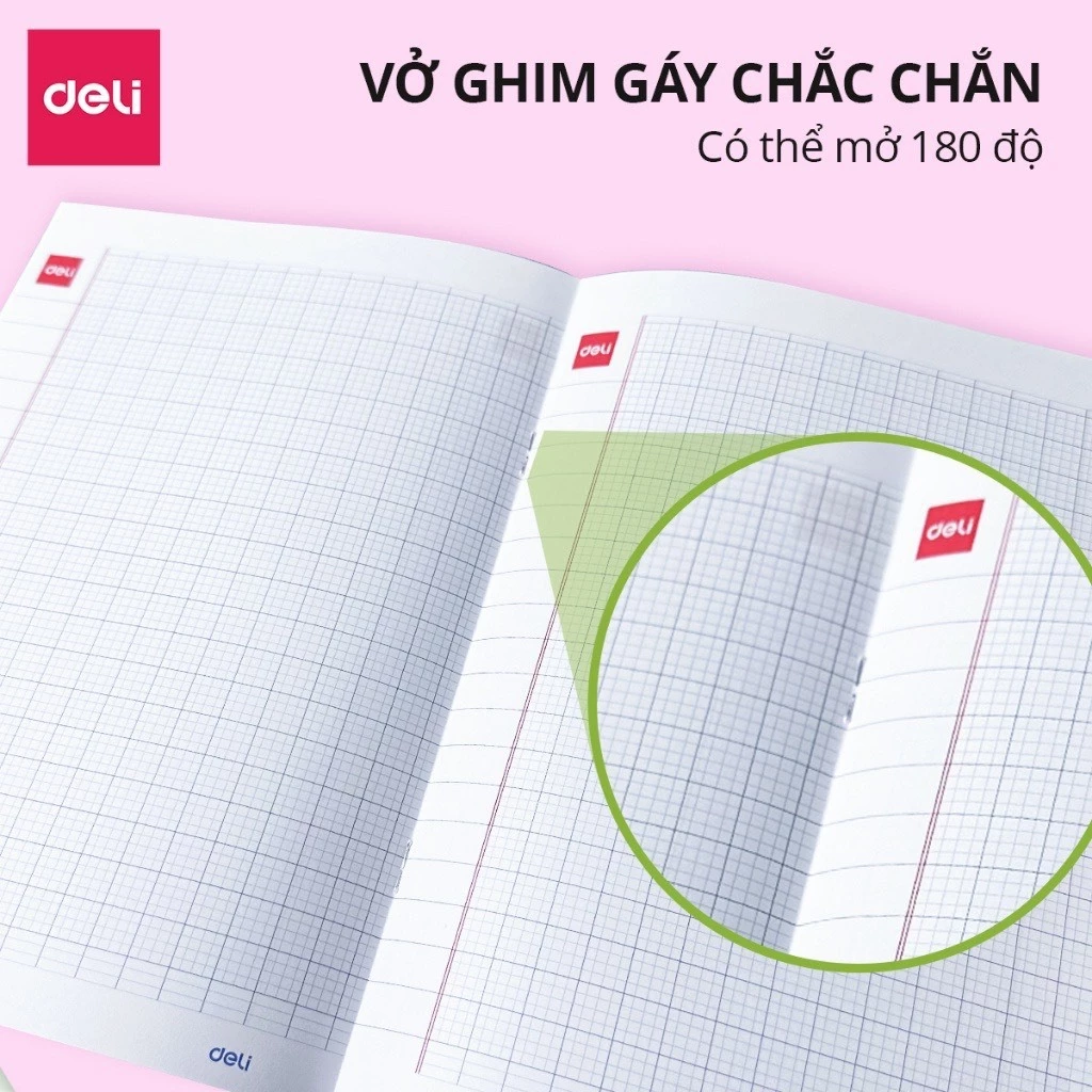Gáy ghim chắc chắn: Vở được đóng bằng công nghệ bấm ghim thép không gỉ, giúp cố định các trang giấy chắc chắn, không bị bong tróc trong quá trình sử dụng. Gáy ghim cũng giúp vở mỏng nhẹ, dễ dàng mở phẳng ra để viết mà không bị phồng ở giữa.